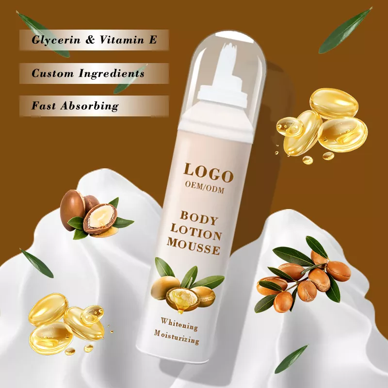 La mousse de lotion pour le corps d'éclaircissement en forme de nuage de Wilson est une crème hydratante durable qui peut être absorbée dans le corps. Notre mousse se présente sous une forme d'aérosol dans une boîte en aluminium, qui produit une riche mousse lorsqu'elle est pressée. Comparé à la sensation lourde et collante des lotions traditionnelles, notre mousse corporelle apporte une touche légère, comme un nuage de doux et dense. De plus, nous avons une variété de formulations parmi lesquelles choisir, par exemple, vous pouvez ajouter à la formule contient des extraits hydratants très efficaces tels que l'acide hyaluronique multiple, les extraits de plantes naturelles, etc., qui peuvent rendre la microstructure en mousse, afin qu'elle ait une hydratation intensive et un verrouillage, un effet hydratant longue altérant sur la peau. La peau est hydratée de l'intérieur.