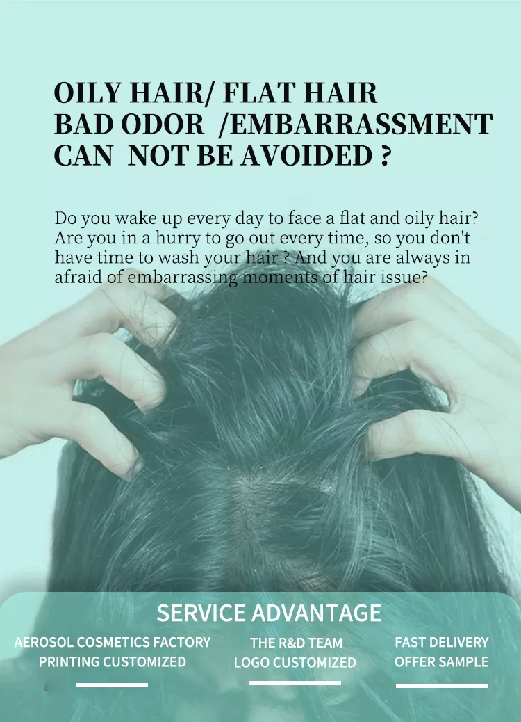 Spray de shampooing sec absorbant l'huile, éliminant les odeurs